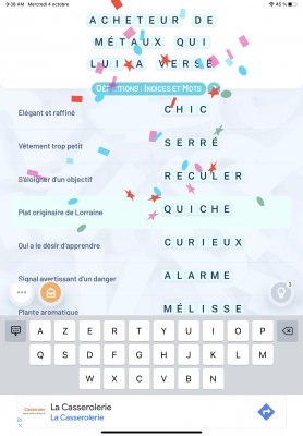 Chaque lettre correspond à un chiffre dans la grille. Pour obtenir ces lettres vous devez trouver les mots qui correspondent à une définition.